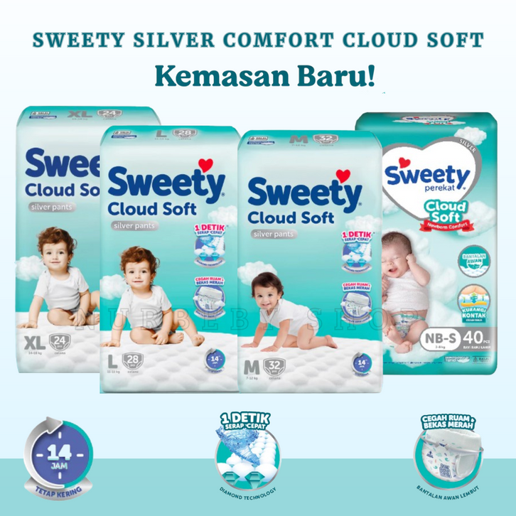 Pampers Sweety Silver Comfort Cloud Soft Pants S36 M32 L28 XL24 Tape NB-S40 Popok Bayi Perekat Celana Paket Hemat Laris