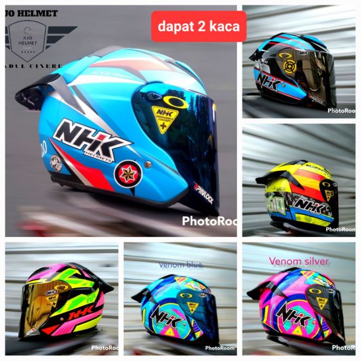 ( GRATIS ONGKIR ) NHK R6 MOTIF PAKET GANTENG VENOM VISOR PNP WITH SPOILER / HELM NHK ORIGINAL