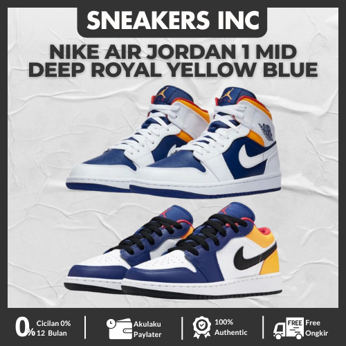[Star] Sepatu Nike Air Jordan 1 Mid Deep Royal Yellow Blue Laser Orange 554724-147 BNIB 100% Authentic