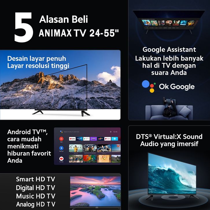 Animax TV LED 4K UHD 55 inch Smart TV Digital Android 11.0 TV Androis Televisi (Smart-A55A)