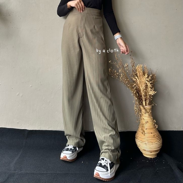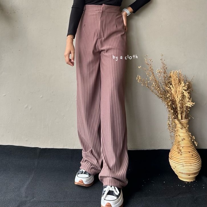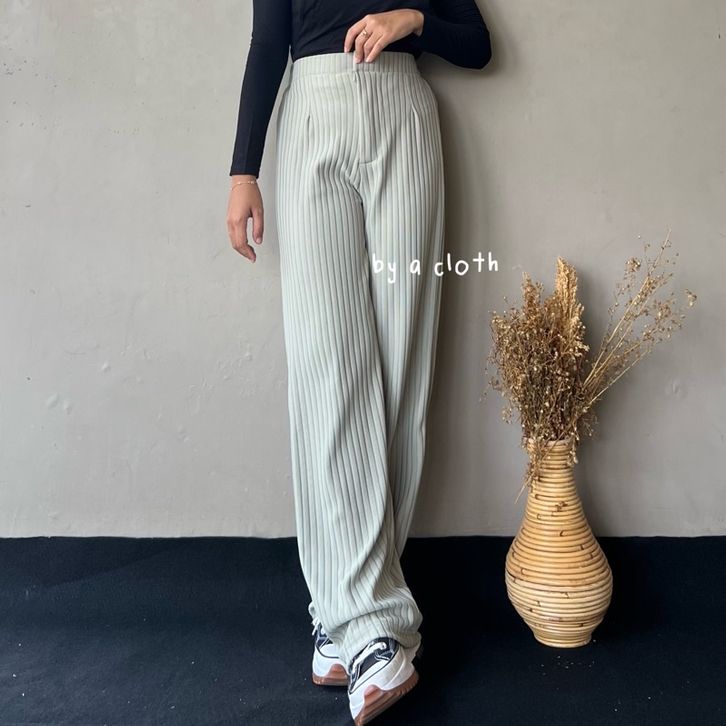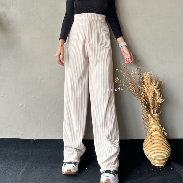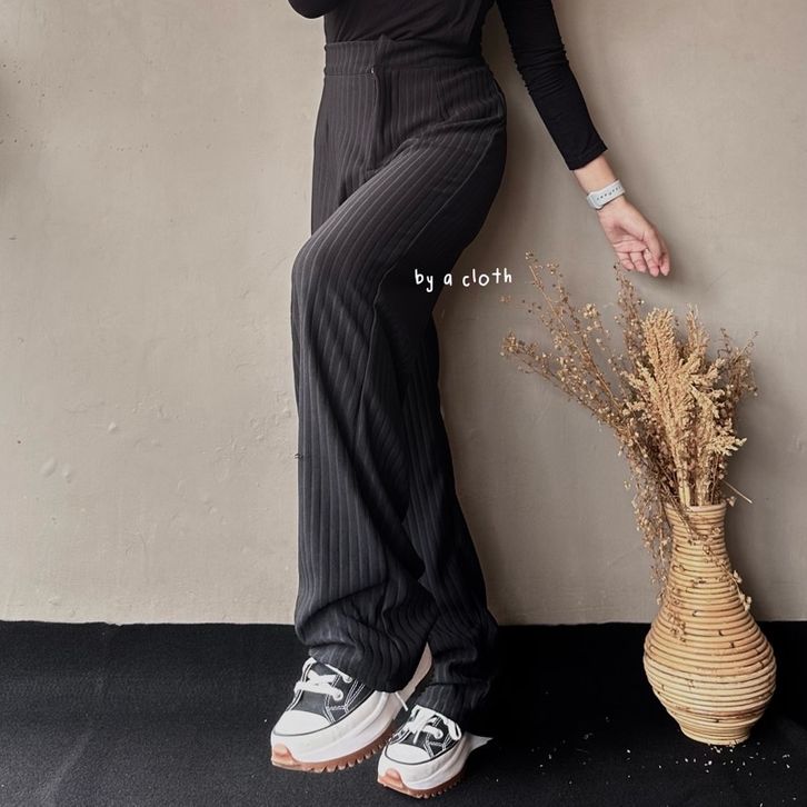 Celana Kulot Knit Rib Panjang - Knit Pants - Loose Pants Highwaist Kulot Panjang Basic Strech Premium Korean