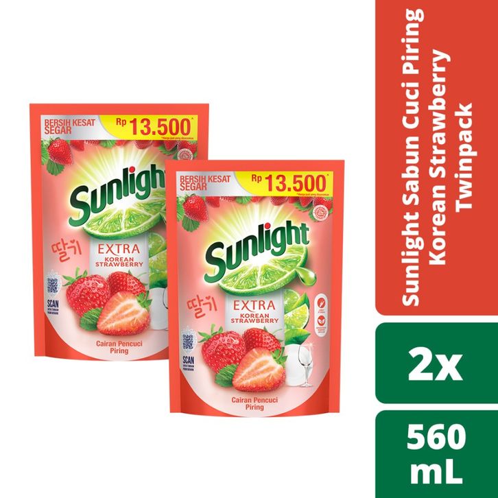 SUNLIGHT Sabun Cuci Piring Korean Strawberry Isi 560ml Dapat 2 Pcs