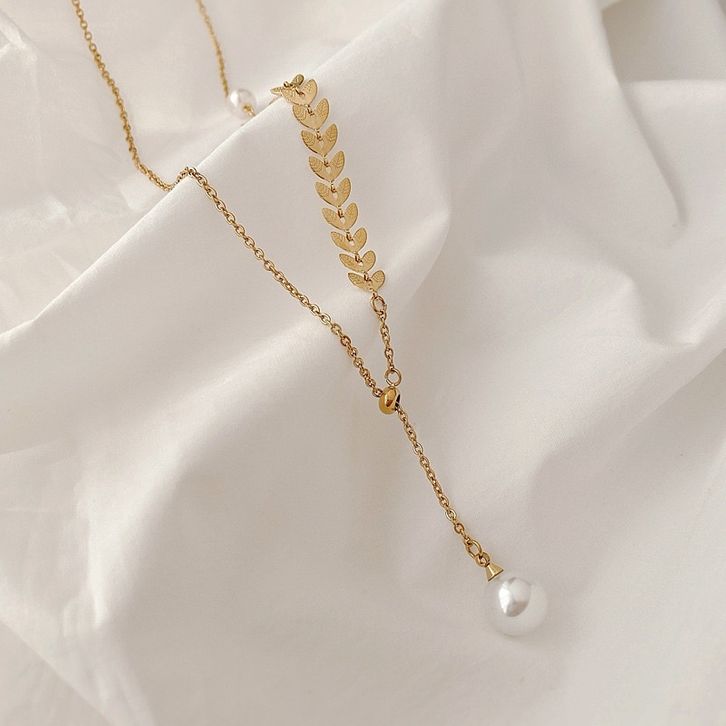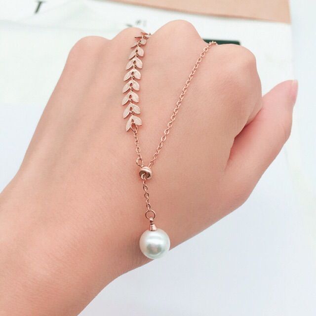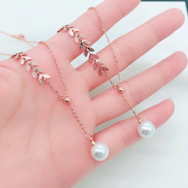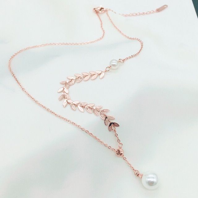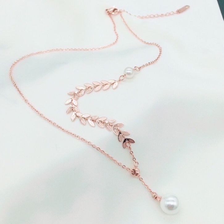 Kalung Titanium model Liontin Rangkaian Daun - Rose Gold