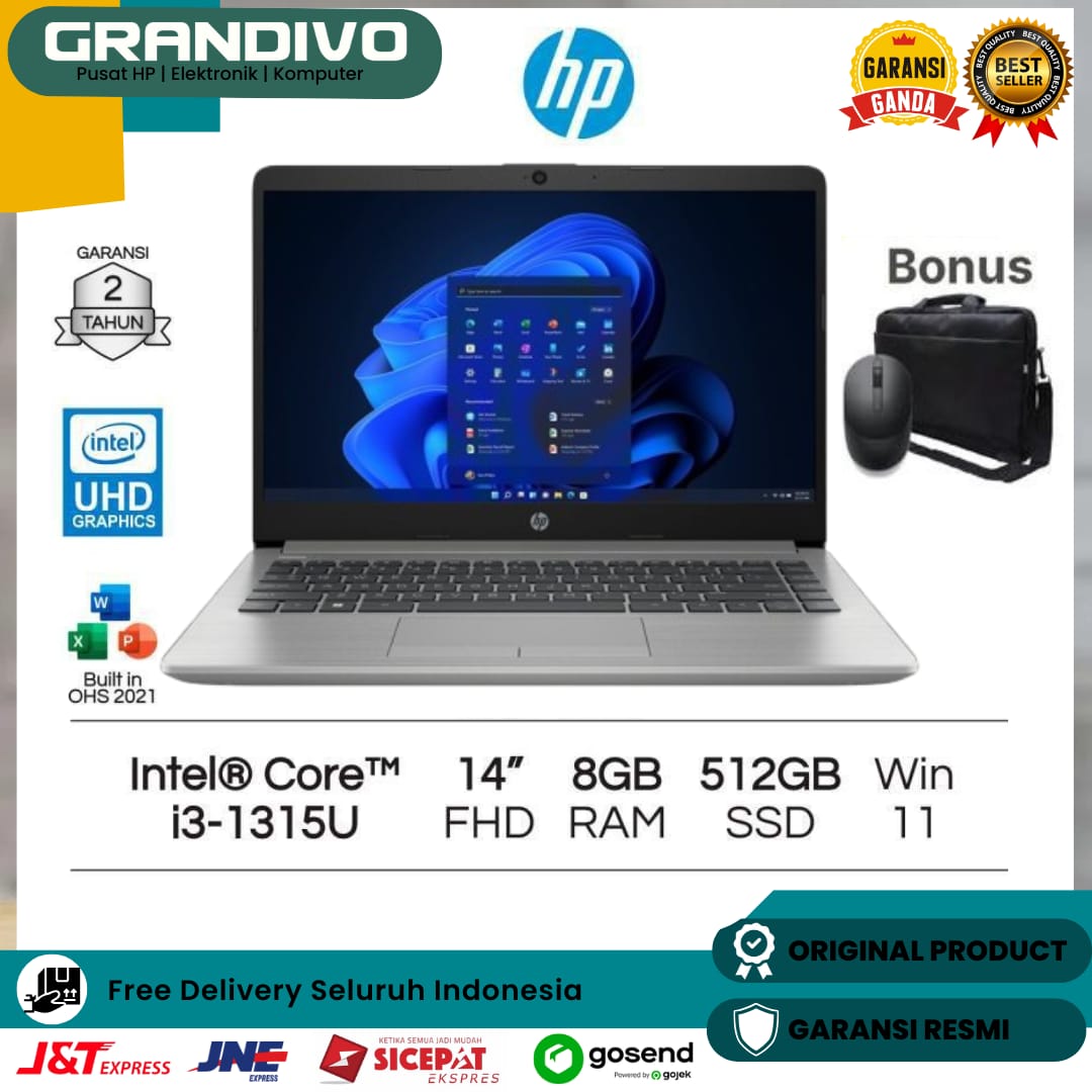 LAPTOP HP 240 G8 - I3 1115G4 512SSD WIN11 - 4GB 512GB SSD Garansi Resmi - Grandivo