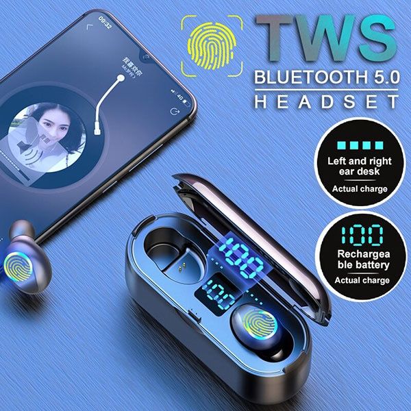 HEADSET BLUETOOTH FULL BASS F9-8 2200MAH POWER BANK TWS WITH MIC 9D BASS LED DISPLAY SMART TOUCH FINGER - HEADSET BASS