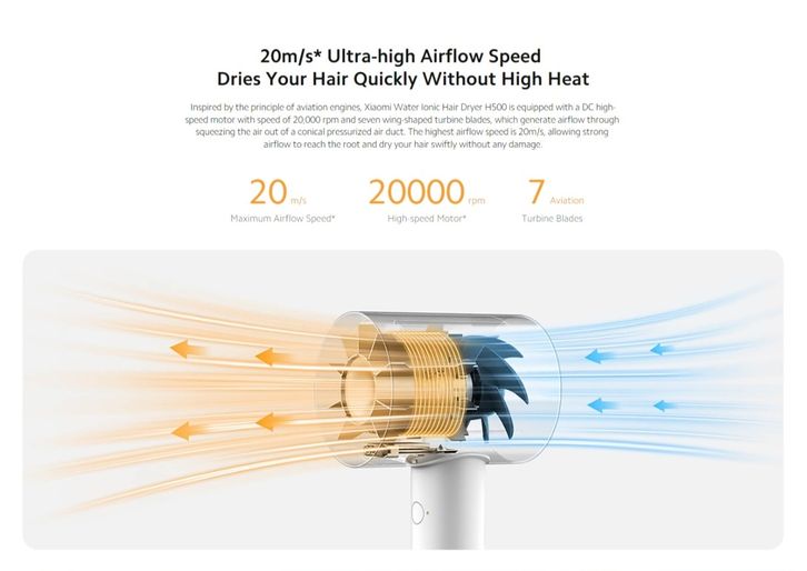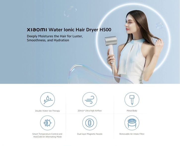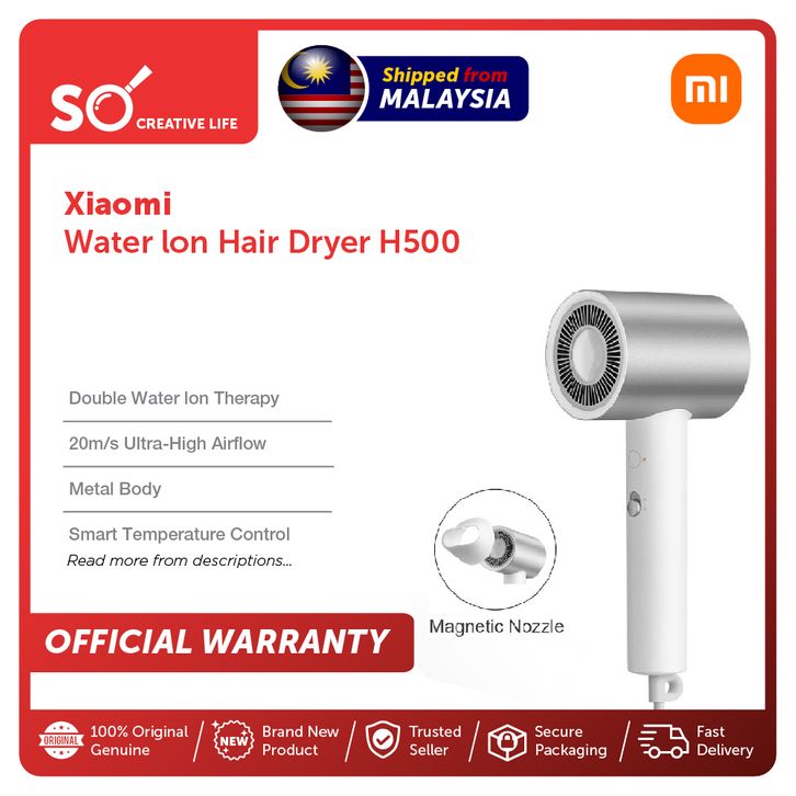 Xiaomi Water Ionic Hair Dryer H500 CMJ03LX | Mi Malaysia Warranty | 1800W Rated Power | Three Temperature Setting