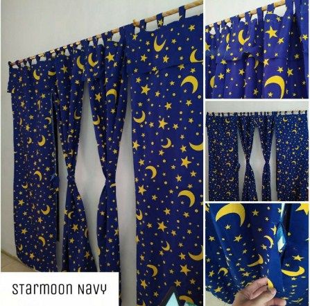 Gorden Jendela Motif Bulan Bintang Uk 55x150cm Bahan Halus Dan Lembut
