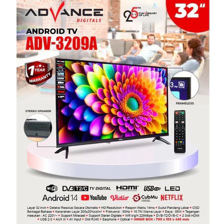 TV ADVANCE 55 43 32 24 INCH SMART LED DIGITAL ANDROID TV 13.0 FREMELESS WITH VOICE ASSISTANT GARANSI RESMI BEST SELLER