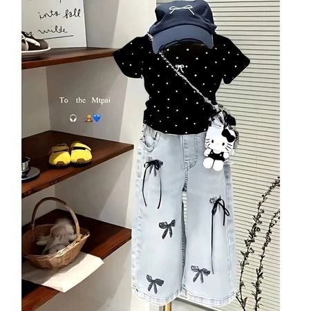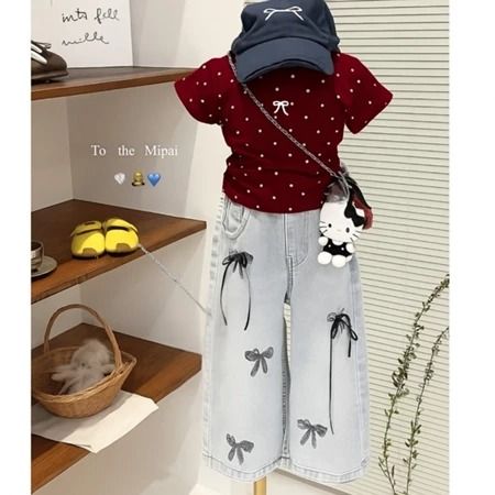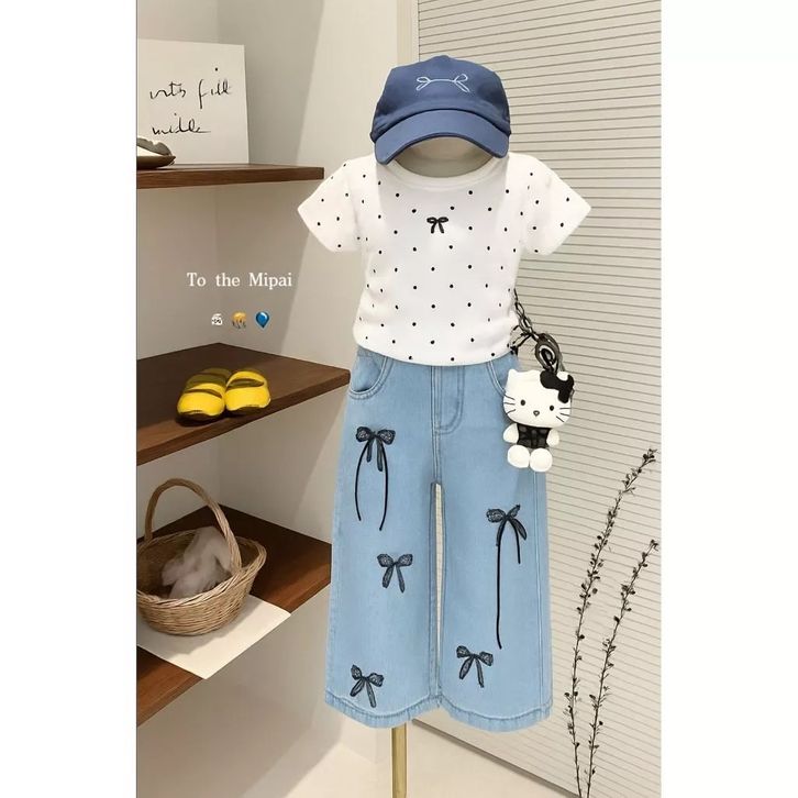 SETELAN JEANS PITA ANAK PEREMPUAN 1-5 TAHUN MOTIF POLKADOT