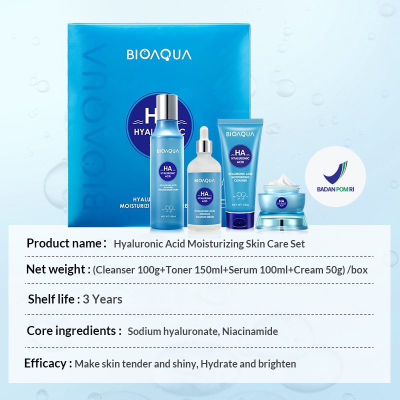 gratis ongkir BIOAQUA Hyaluronic Acid Moisturizing Skin Care Set 1 paket lengkap bpom original tanpa dp official store