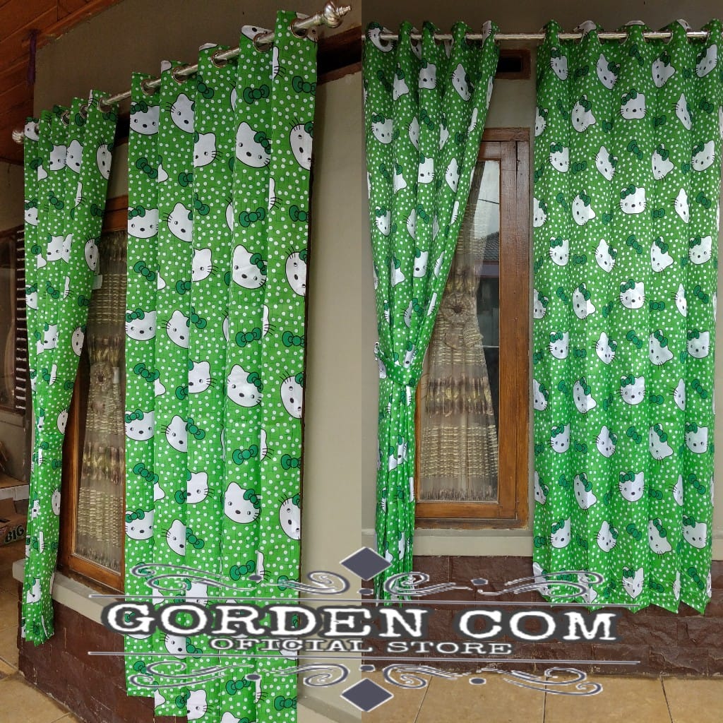 PROMO Tirai G orden Jendela Minimalis model smokring Motif Karakter Hello KIty Hijau