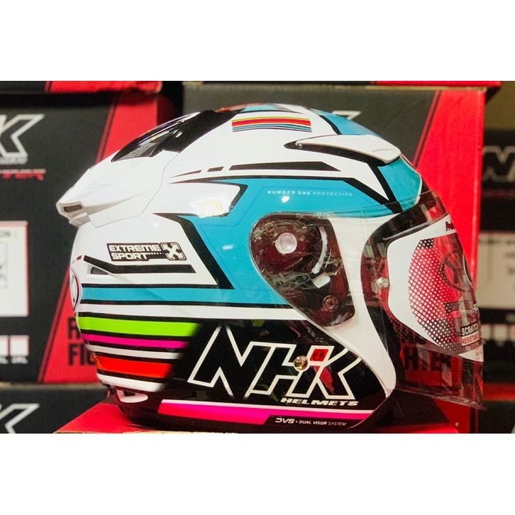 [Star]( GRATIS ONGKIR ) NHK R1 RAINBOW WHITE LIGHT TOSCA FULL FACE HELM - HELM NHK ORIGINAL