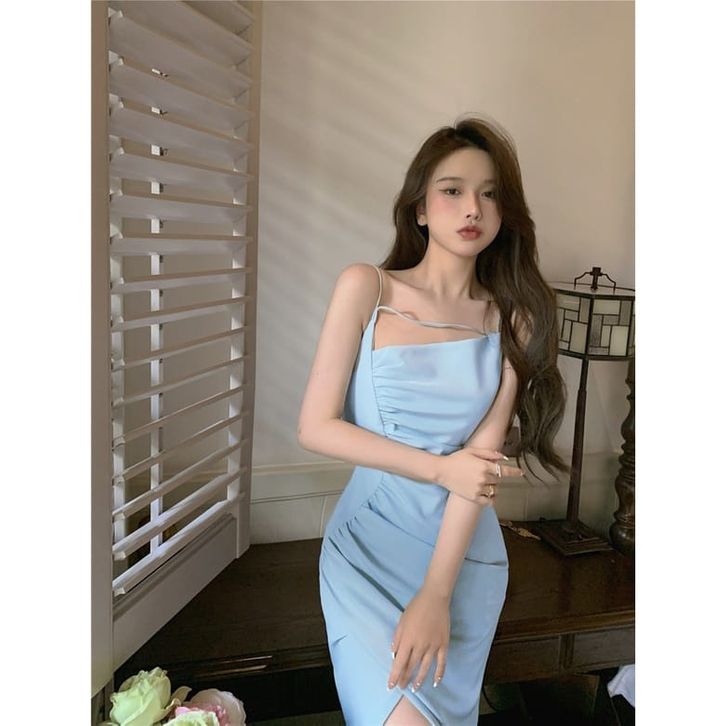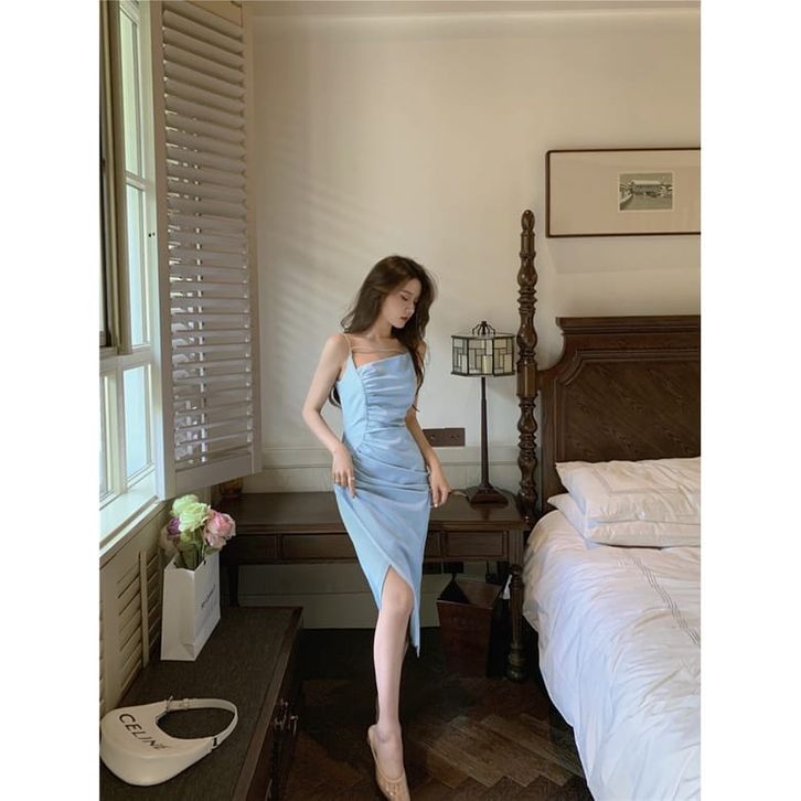 GRATIS ONGKIR Mini Dress Bodycon Pleat slit Pakaian Wanita 1639 (S-XL) Baju Pesta, Gaun Party, Dres Vintage Korea Style