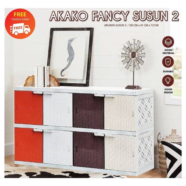Lemari Pakaian Plastik JUMBO Akako Fancy 4 Pintu Buffet Serbaguna Motif Rotan Susun
