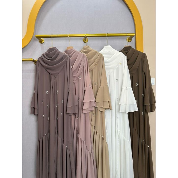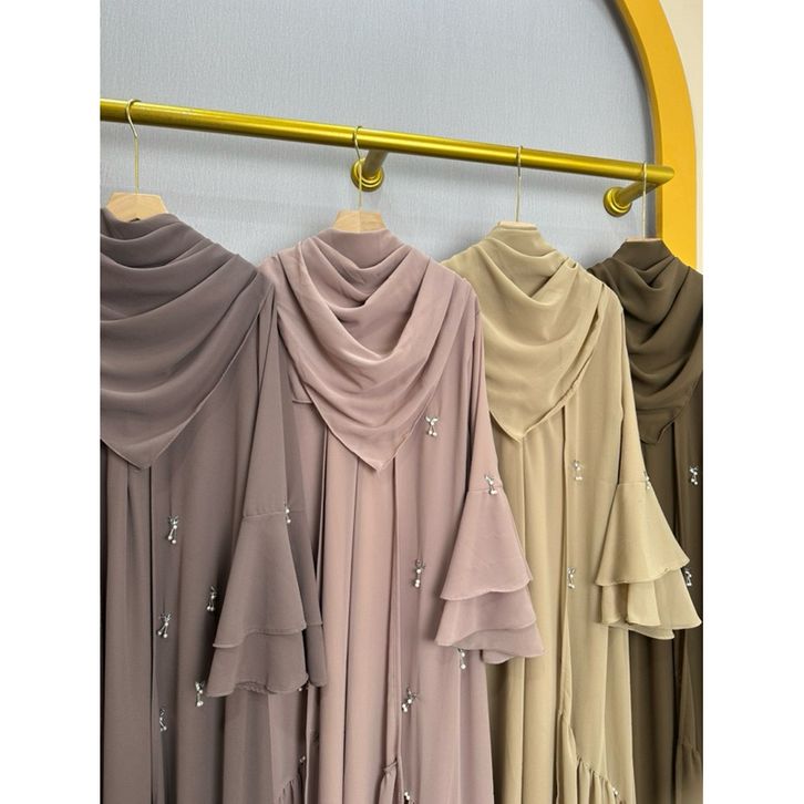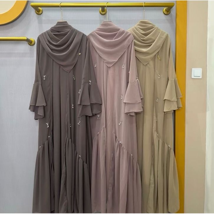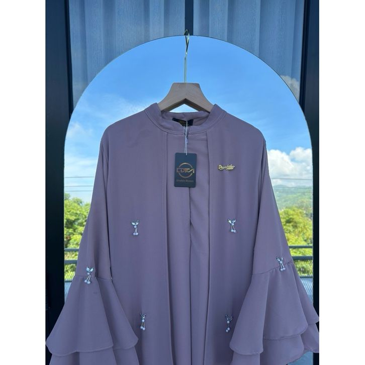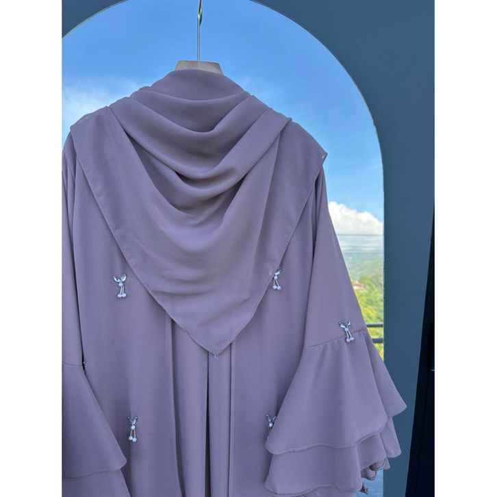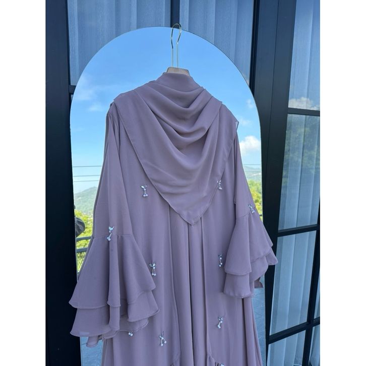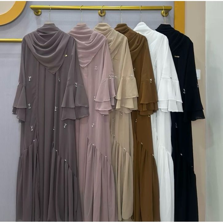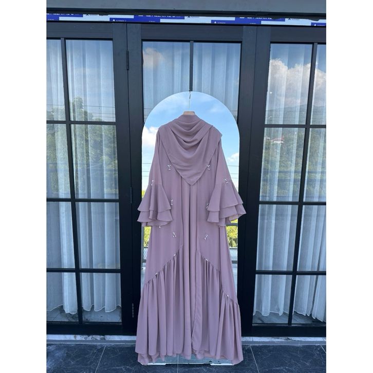 Zaina Abaya Set Hijab Segiempat Gamis Abaya Wanita Terbaru Bahan Ceruty Armany Baby Doll Full Puring
