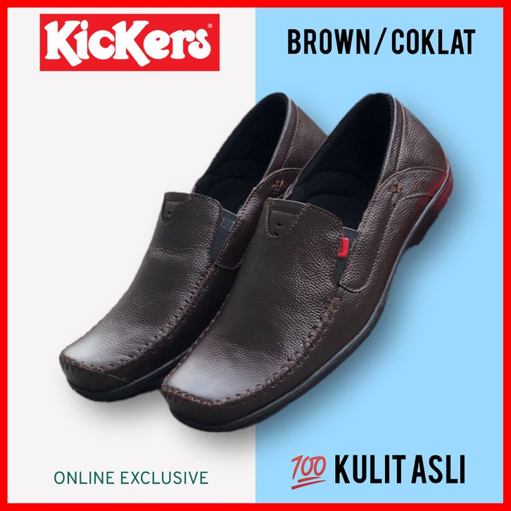 SEPATU PANTOFEL PRIA KICKERS SLIP ON KULIT ASLI / SEPATU KERJA FORMAL OFFICE COWOK / SEPATU WEDDING NIKAHAN LAKI