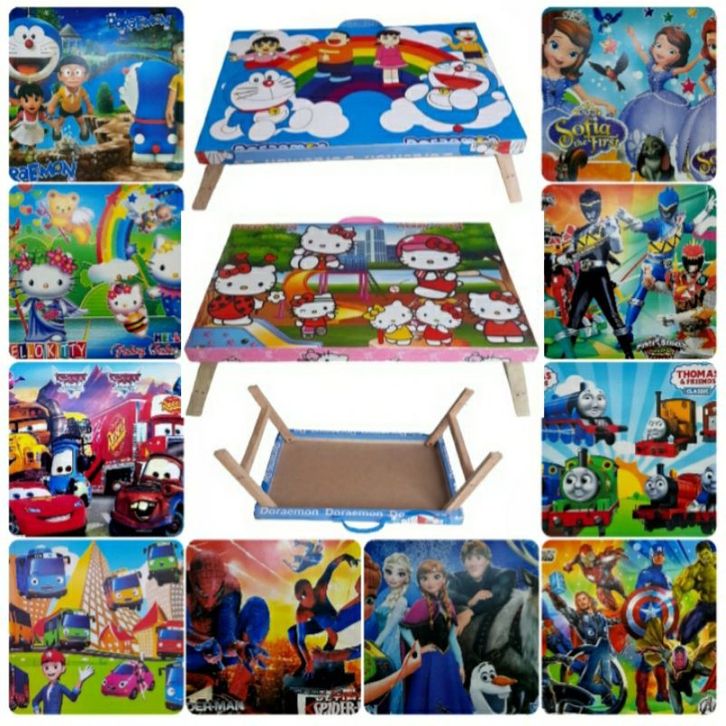 MEJA BELAJAR LIPAT KAYU KARAKTER ANAK LAPTOP MAKAN