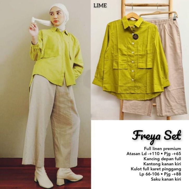 ONE SET WANITA TERBARU - FREYA SETELAN LINEN RAMI KEKINIAN 2023 ATASAN DAN CELANA