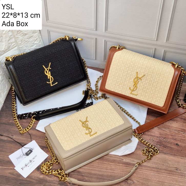 TAS YSL RAFFIA SOLFERINO PREMIUM/TAS WANITA YESLONG CROSSBODY 22CM/TAS SELEMPANG BRANDED TERBARU