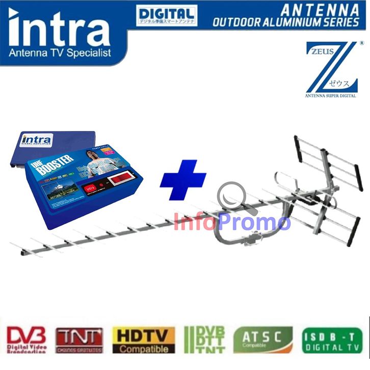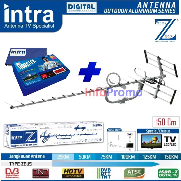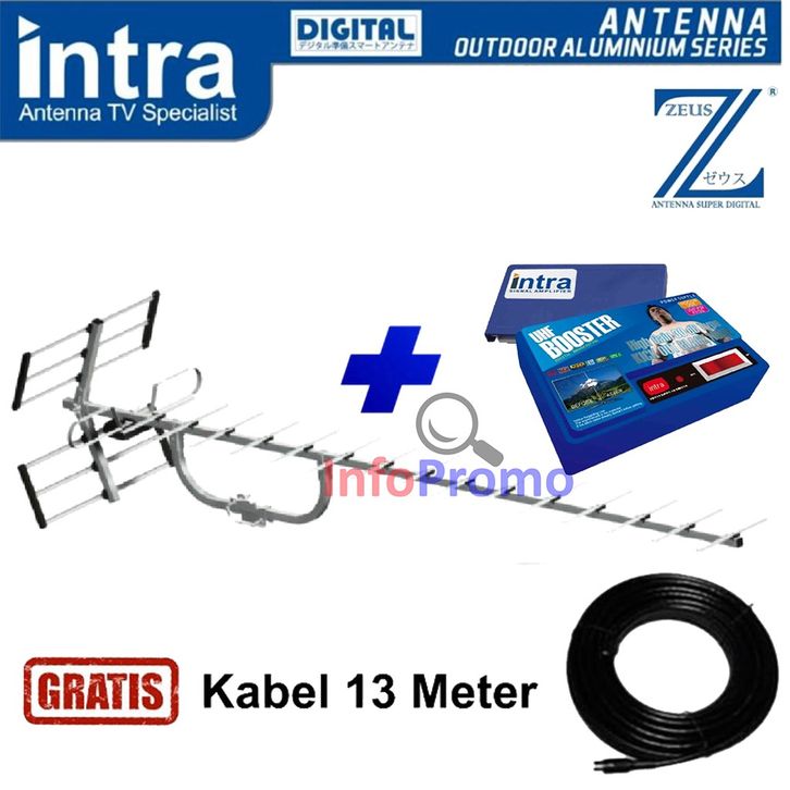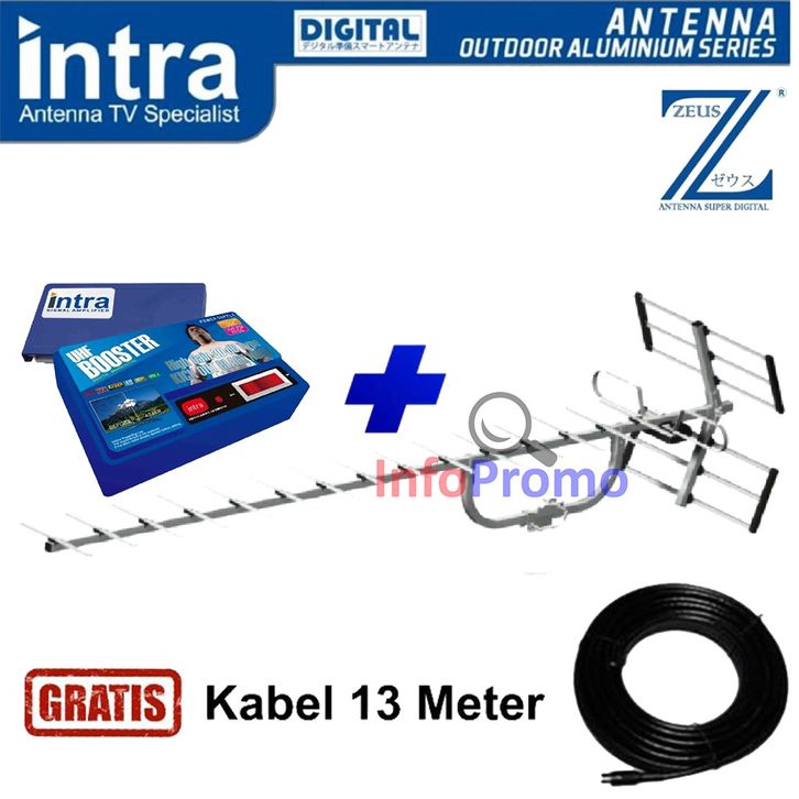 Antena Luar TV Outdoor Paket Intra Zeus Booster Power Supply150 cm Free Kabel 13 Meter Original