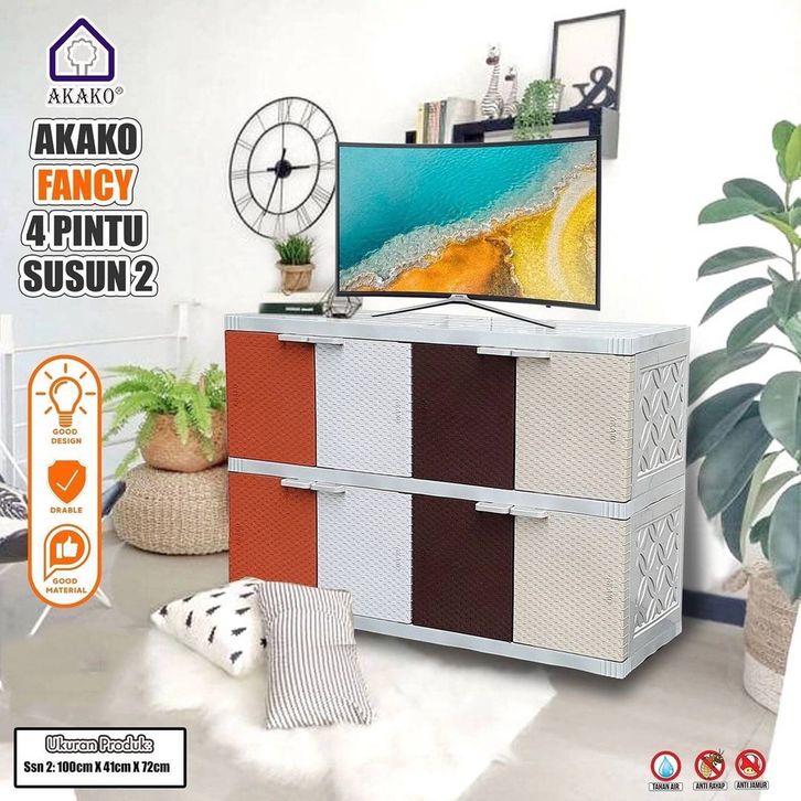 LEMARI PLASTIK BUFFET TV SERBAGUNA AKAKO FANCY RAK PAKAIAN 5 4 3 2 SUSUN LACI ROTAN BERKUALITAS MINIMALIS MODERN MURAH