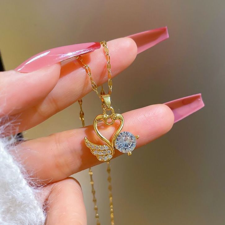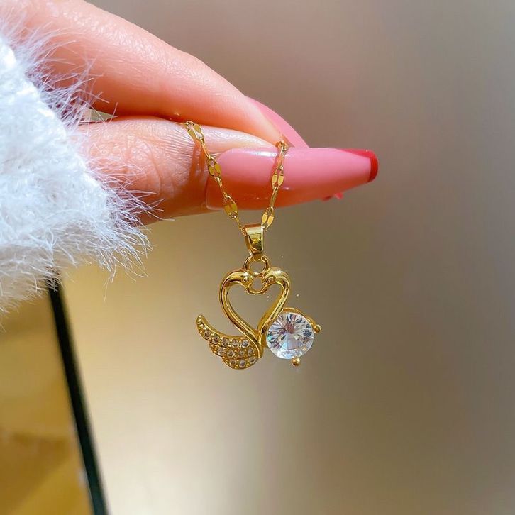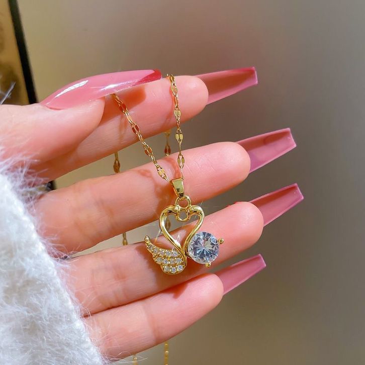Kalung Titanium Double Angsa Diamond Elegan Korea Fashion Style