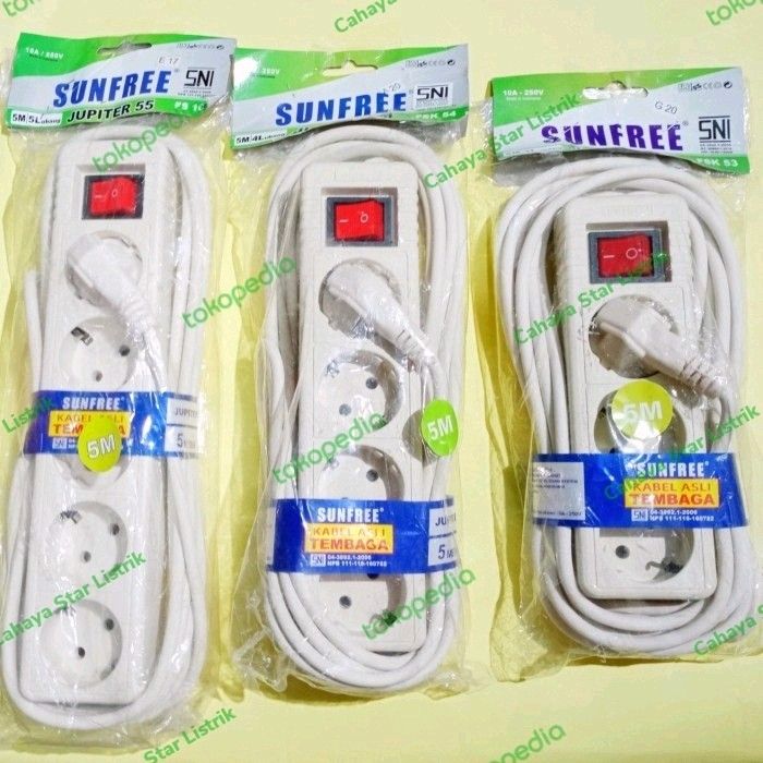Stop Kontak Arde 3/4/5 Lubang 3M 5M Sunfree perpanjangan Kabel Olor -