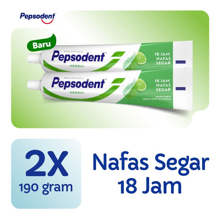 Pepsodent Action 123 PASTA GIGI Herbal 190gr x 2pcs Nature Essentials Mulut Adem, Nafas Segar
