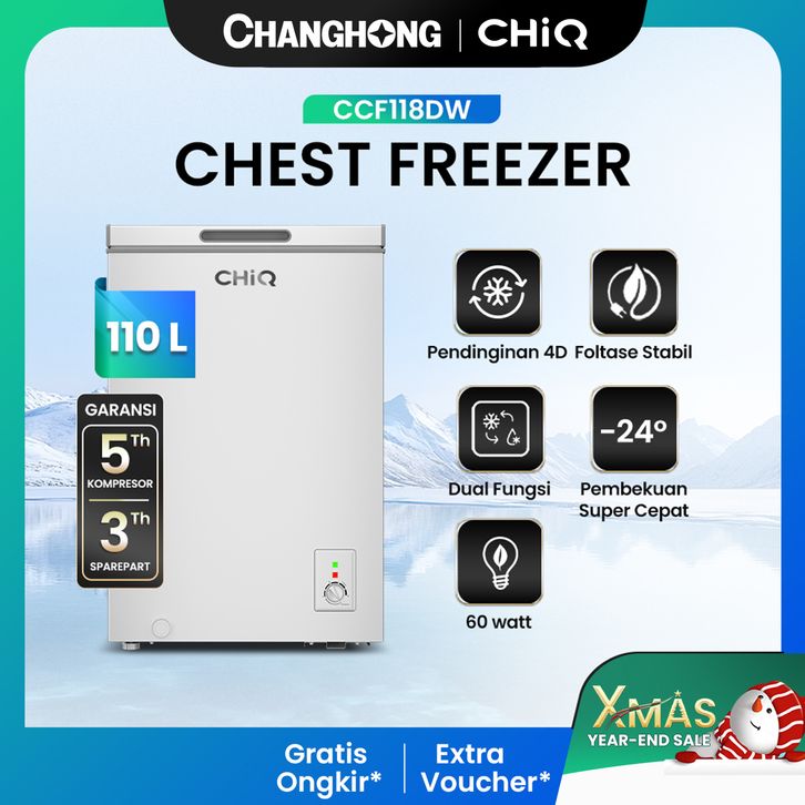 CHANGHONG CHiQ Chest Freezer Kapasitas 110 Liter - CCF118DW White