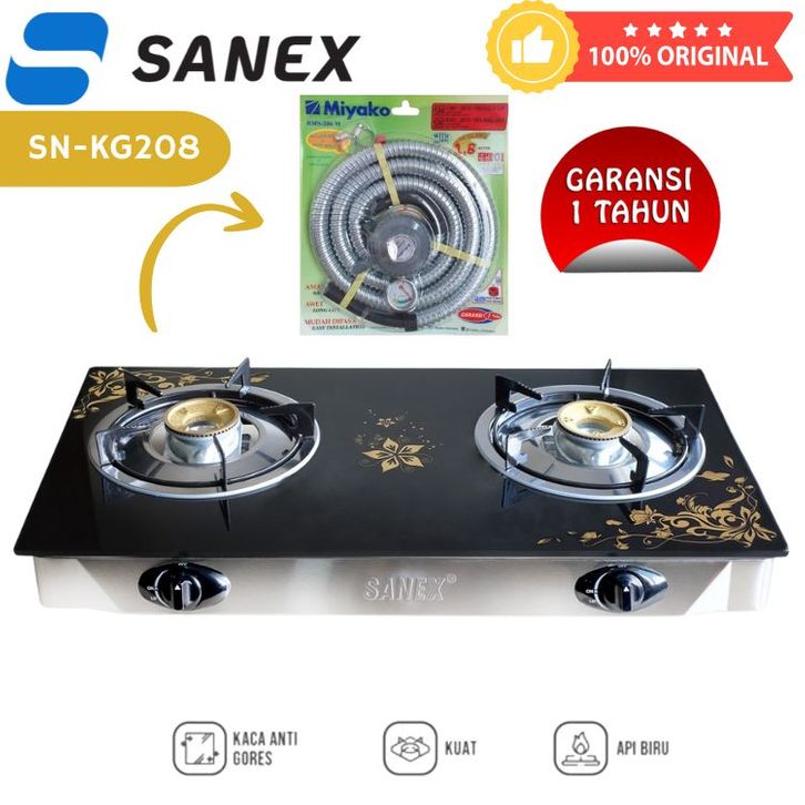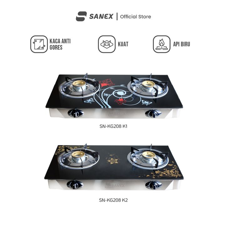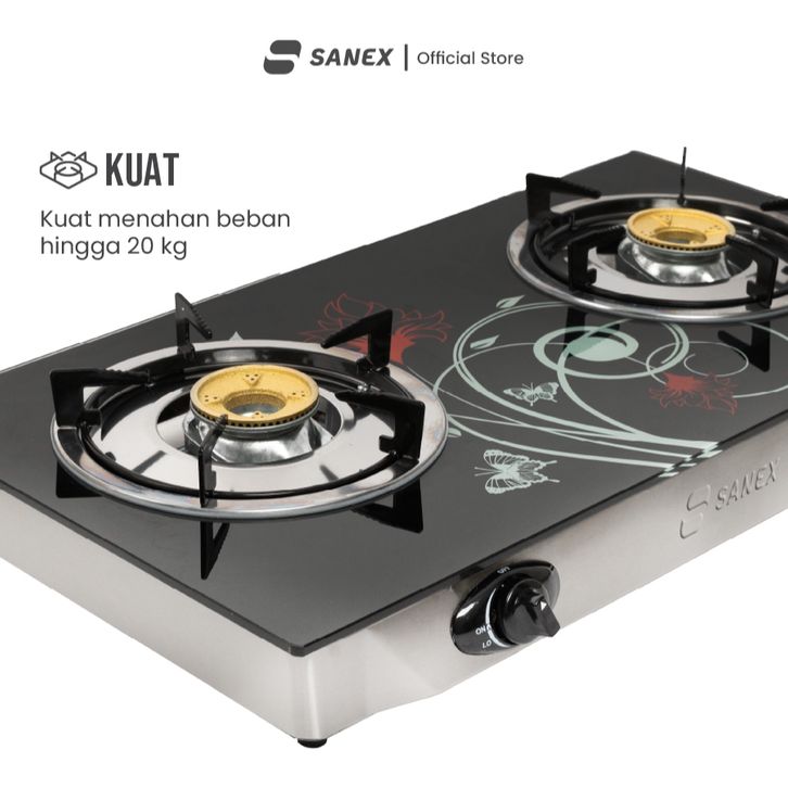 KOMPOR GAS 2 TUNGKU KACA SANEX BUTTERFLY SERIES SNKG208 BEST SELLER ORIGINAL OFFICIAL STORE