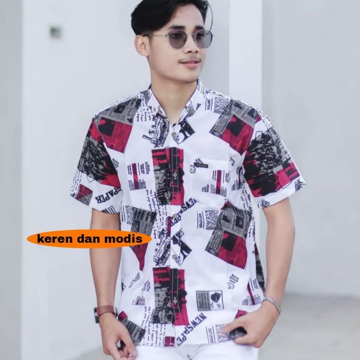 Kemeja Lengan Pendek Pria Motif Keren Pantai Surfing Size M L XL XXL