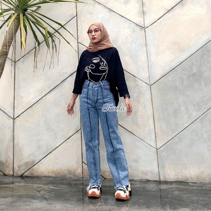 CELANA JEANS HIGH WAIST WANITA TERBARU - FRONT LINE RUMBAI CULLOTES SNOW FL TULANG RAWIS 27-34