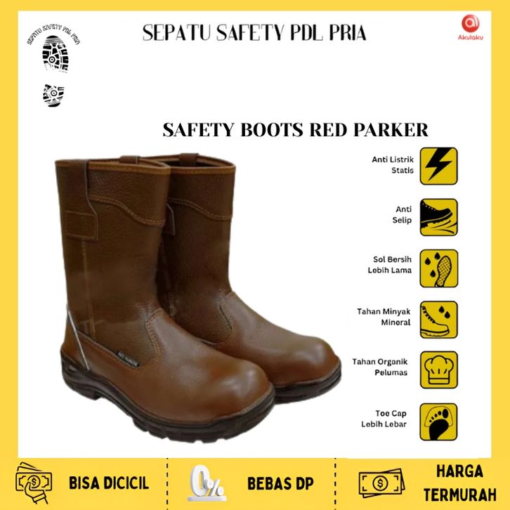 SEPATU SAFETY PRIA RED PARKER T186 KULIT ORI SEPATU KERJA DEWASA ORIGINAL ASLI WARNA COKLAT MURAH TERLARIS