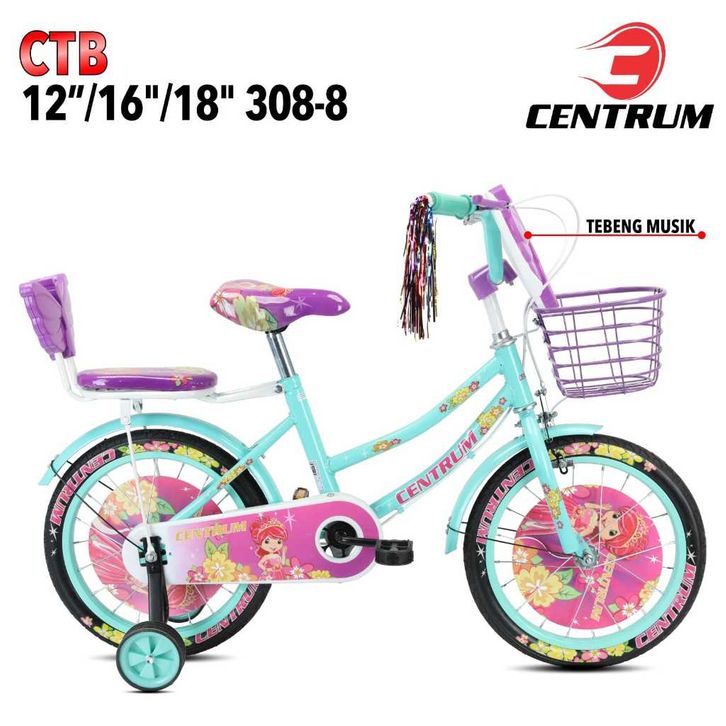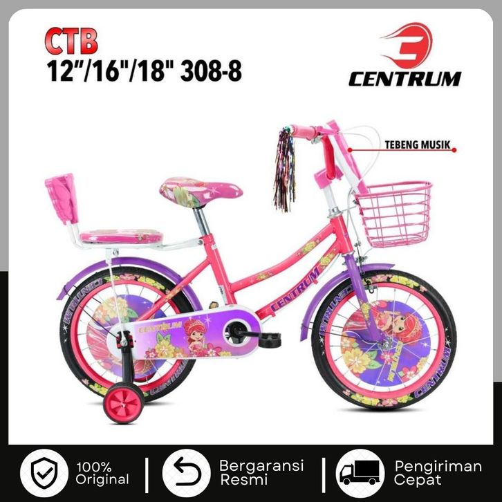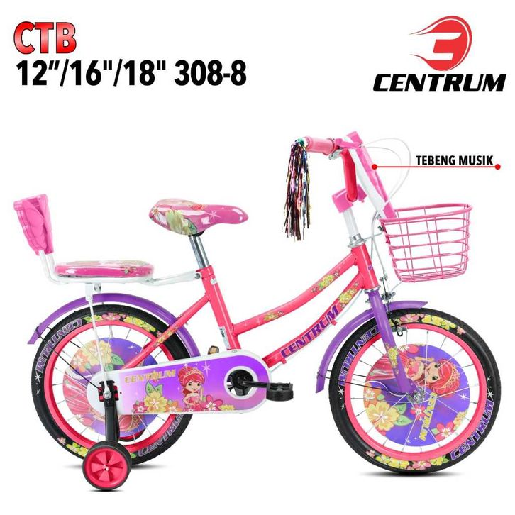 Sepeda anak mini SEPEDA ANAK PONNY CENTRUM 308-8 TAMENG MUSIK DAN LAMPU (usia 4-8 tahun) Bonus botol air TERLARIS