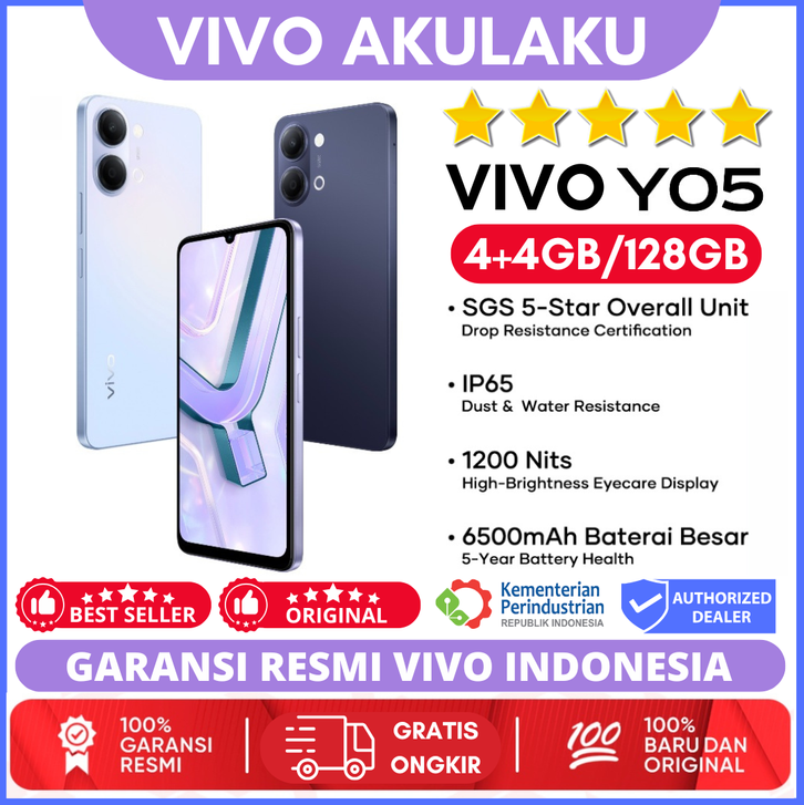 (Vivo Sale) Vivo Y05 4/128GB - Desain Premium, 6500mAh Tahan 3 Hari, IP65 Tahan Hujan, Tahan Banting Ekstrem | Y 05