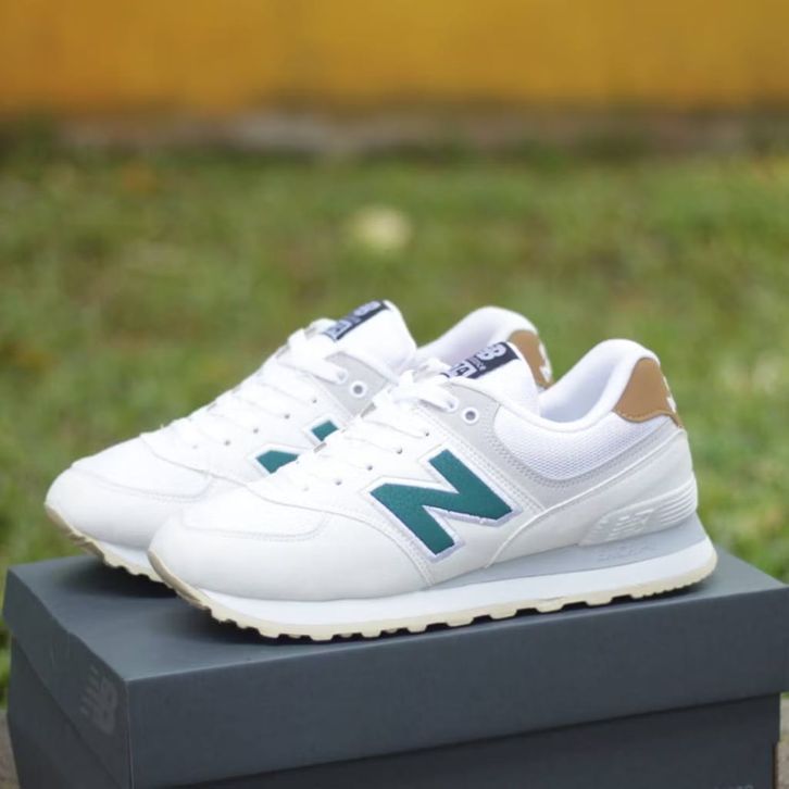 SEPATU PRIA/WANITA NEW BALANCE 574 WHITE GREEN PREMIUM FREE ONGKIR FREE BOX
