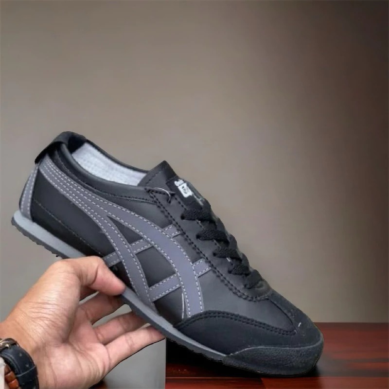 SEPATU PRIA/WANITA ONITSUKA TALI BLACK GREY PREMIUM - FREE ONGKIR