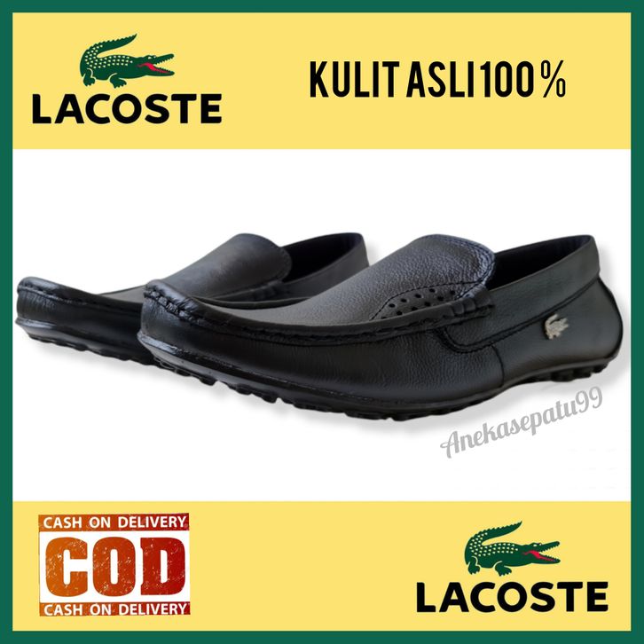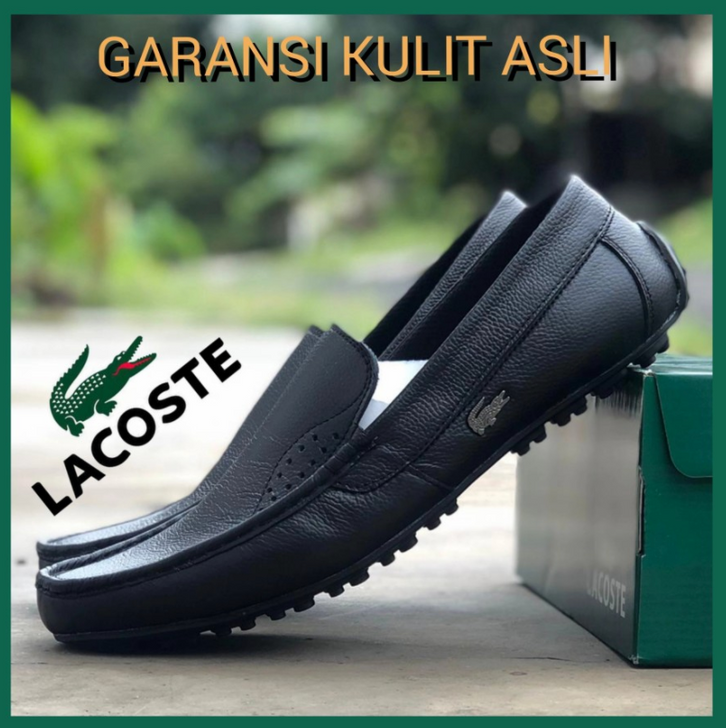 SEPATU PRIA FORMAL LACOSTE KULIT ASLI GARANSI / SEPATU KERJA SLIP ON KANTOR OFFICE / SEPATU PANTOPEL WEDDING PERNIKAHAN