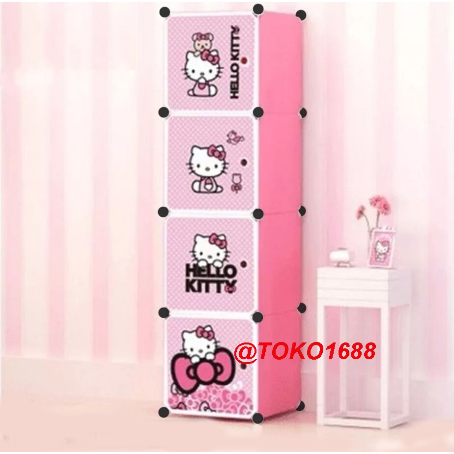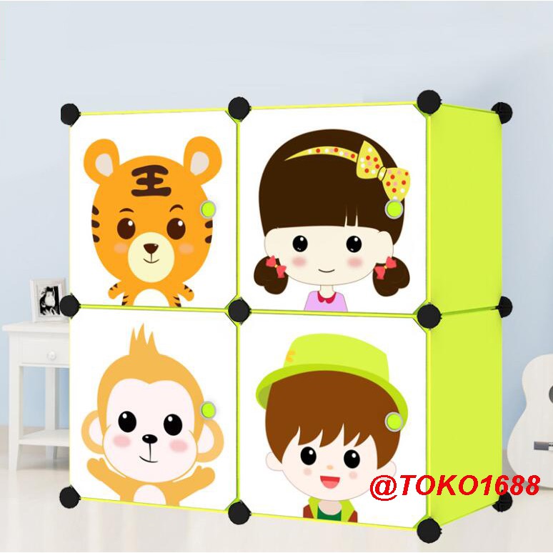 Lemari pakaian plastik rak serbaguna susun plastik lemari baju rak buku 4 pintu/kotak/susun