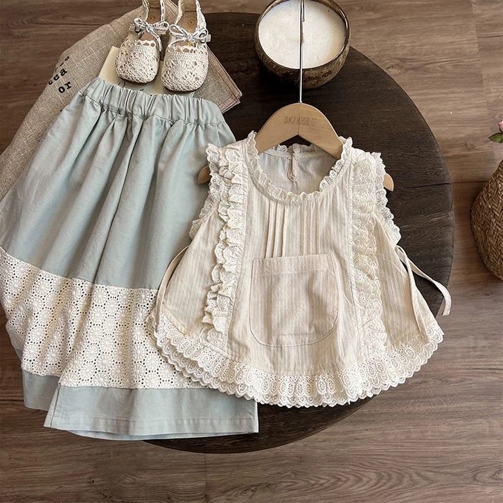 S SETELAN ANAK PEREMPUAN GAYA KOREA KEMEJA LENGAN PENDEK BARU JEANS SETELAN DUA POTONG JOYFULTOT