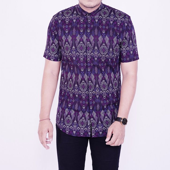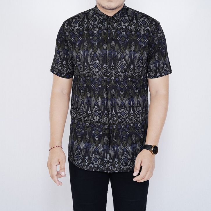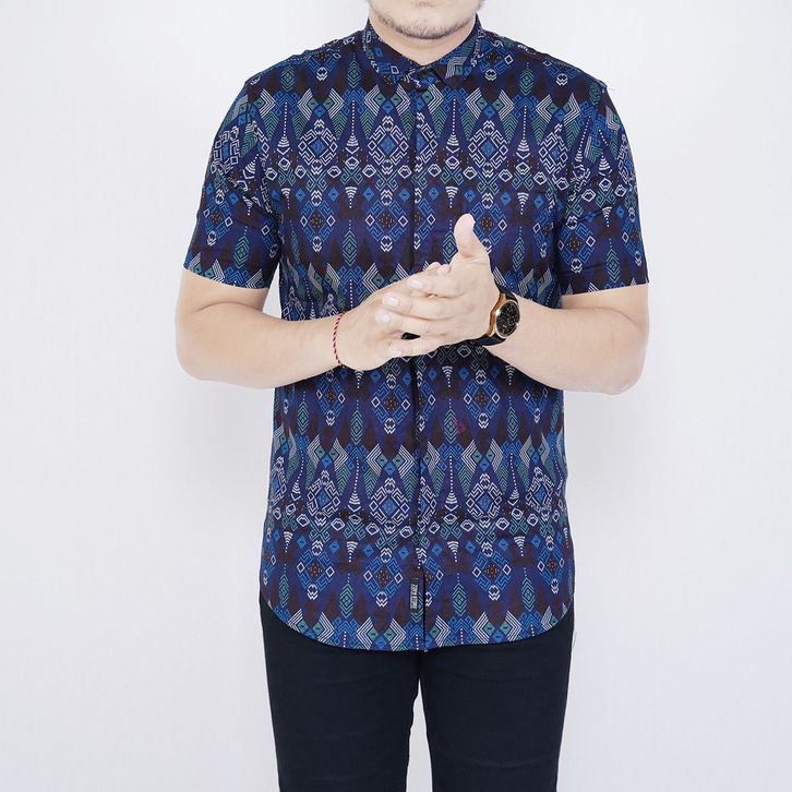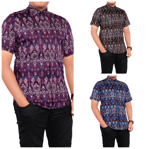 KEMEJA BATIK COWOK KERJA KANTORAN BATIK TERPEDOT KEMEJA BATIK PRIA LENGAN PENDEK EXCLUSIVE 1077