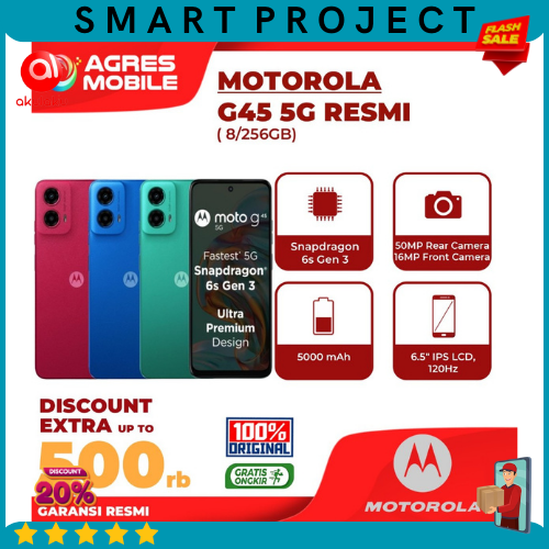 (Best Seller) Hp Terbaru 2025 Motorola G45 5G 8/256GB - Up to 16GB Extended RAM Snapdragon 6s Gen 3 6.5 inch Screen Size