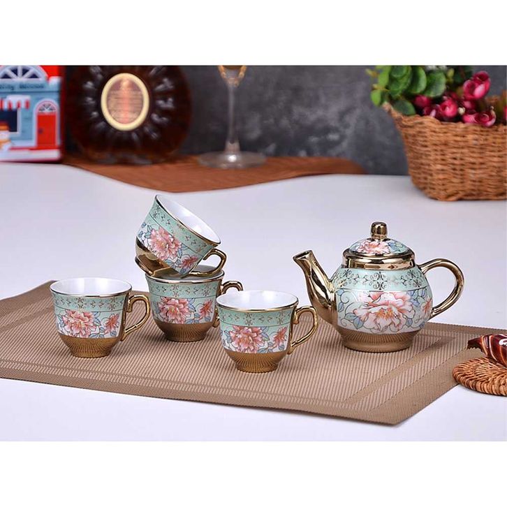 SUNFILI Cangkir Teko Keramik Set 4 Cups 1 Pot European Style - B140