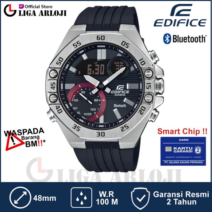 Casio EDIFICE ECB-10P-1ADF - Jam Tangan Pria DualTime ORIGINAL - Tali Rubber