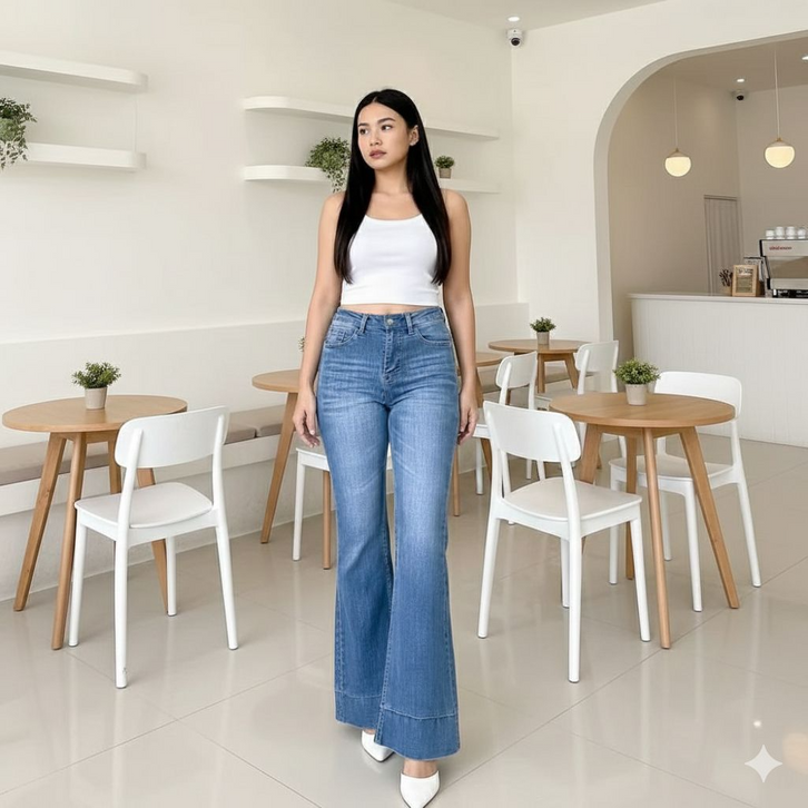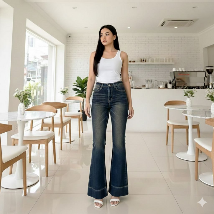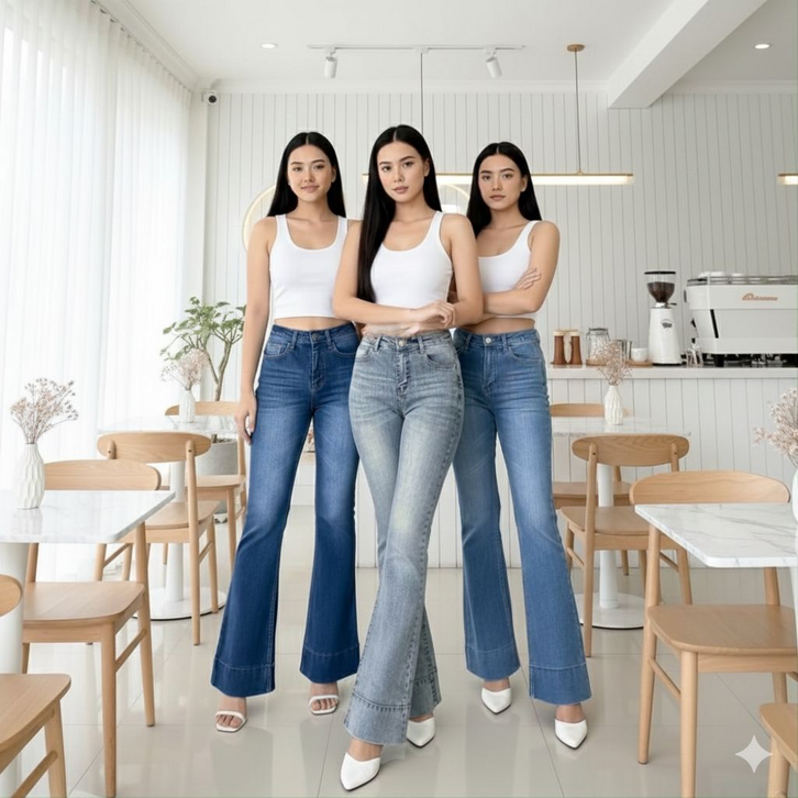Celana Cutbray Jeans Wanita Lipat Bawah Celana Flare Strech Flash Sale