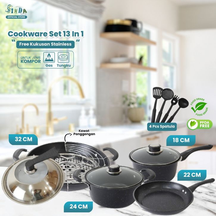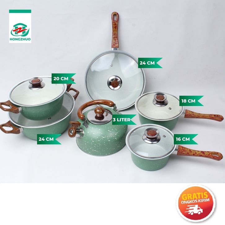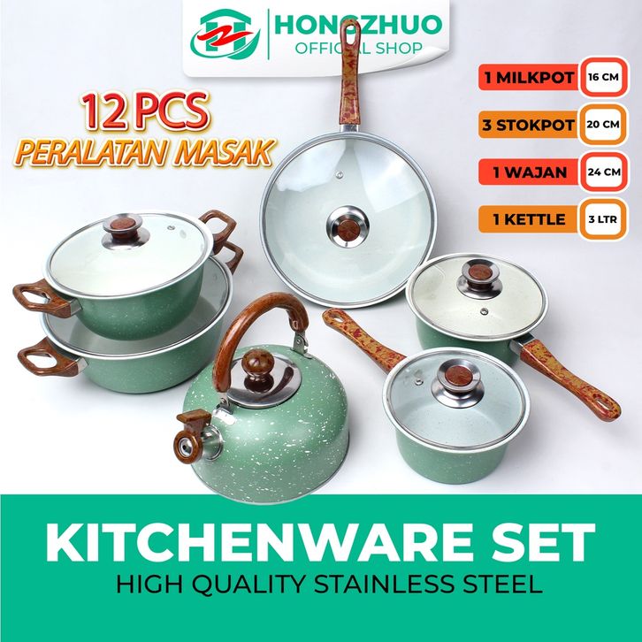 (BEBAS ONGKIR) TERBARU Panci Set Stainless Steel 12 Pcs dilengkapi Teko panci set Kuat dan anti lengket MURAH TERLARIS