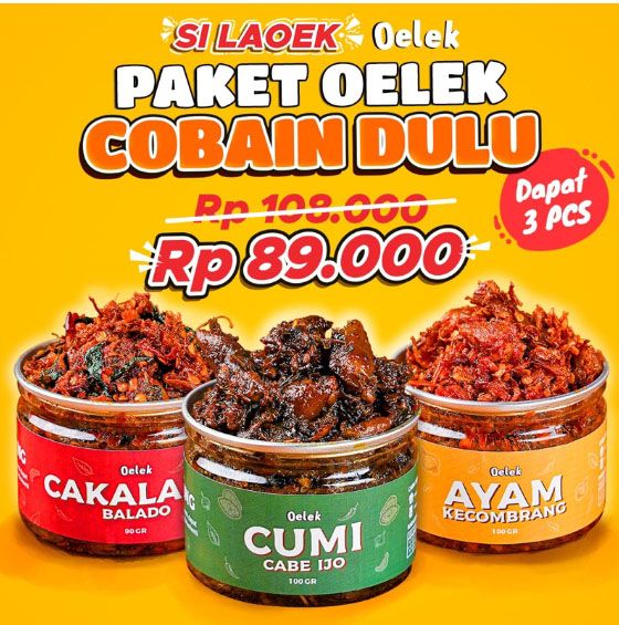 SAMBEL Oelek Paket Cobain Dulu Si Laoek / Cakalang Balado / Cumi Cabe Ijo / Ayam Kecombrang / Lauk Siap Saji