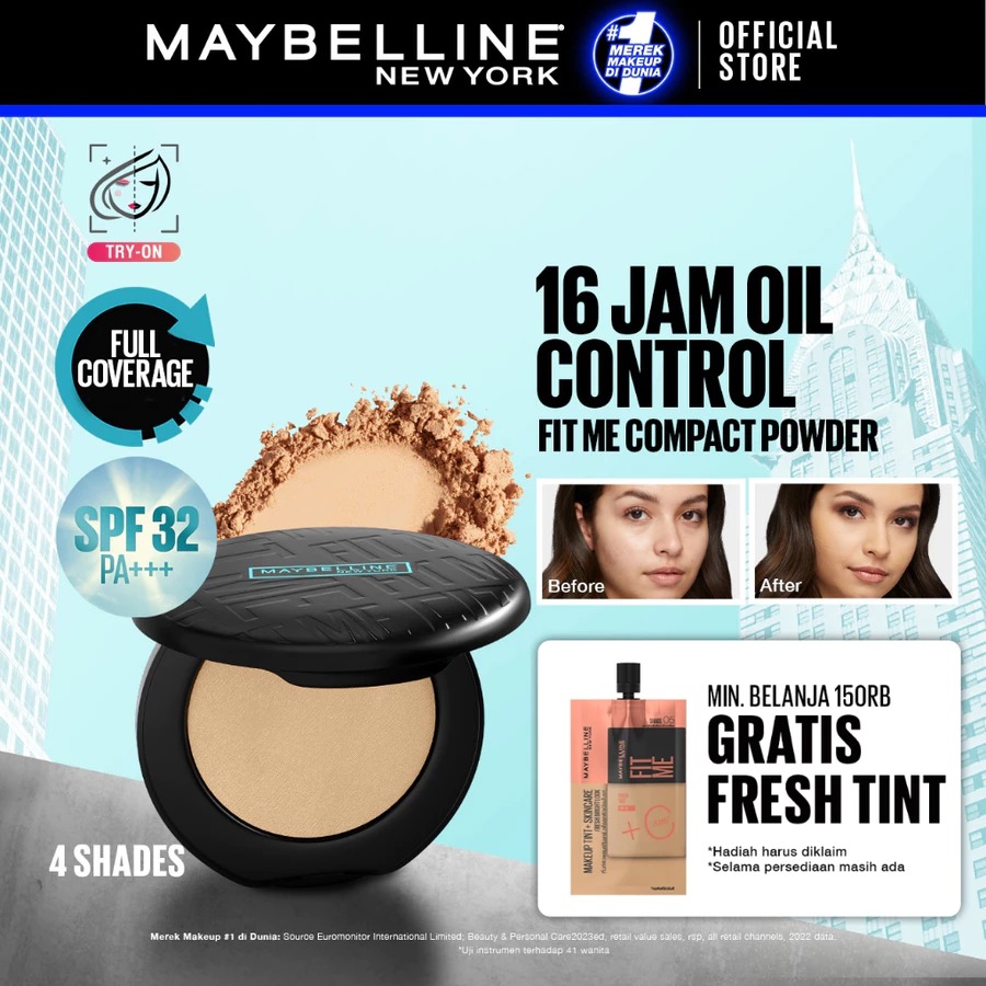 MAYBELLINE Fit Me Matte + Poreless 16 Jam Oil Control Compact Powder SPF 32 PA+++