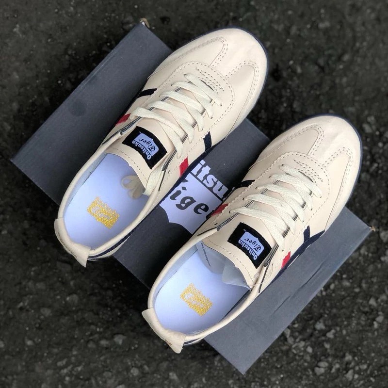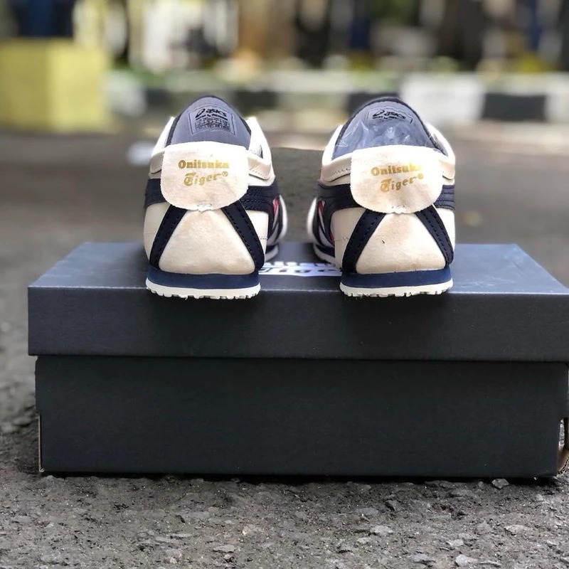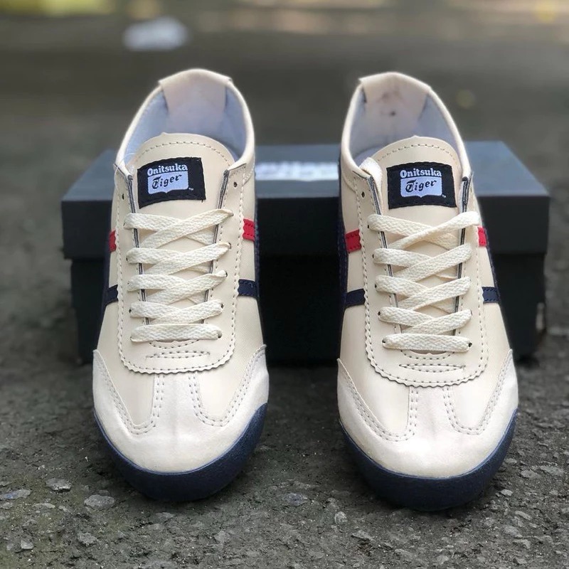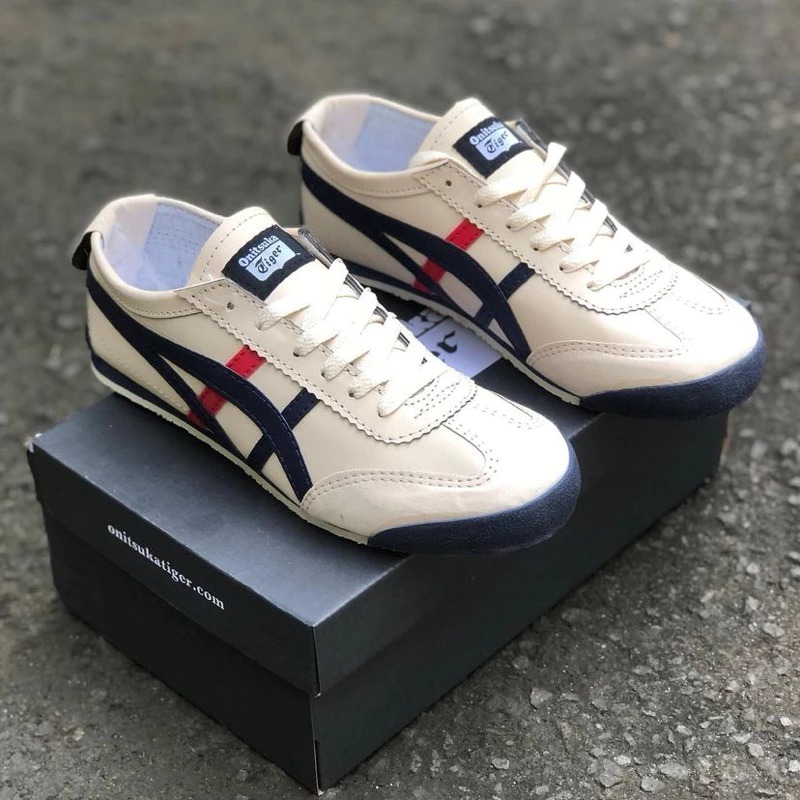 SEPATU PRIA ONITSUKA TALI CREAM NAVY PREMIUM - FREE ONGKIR