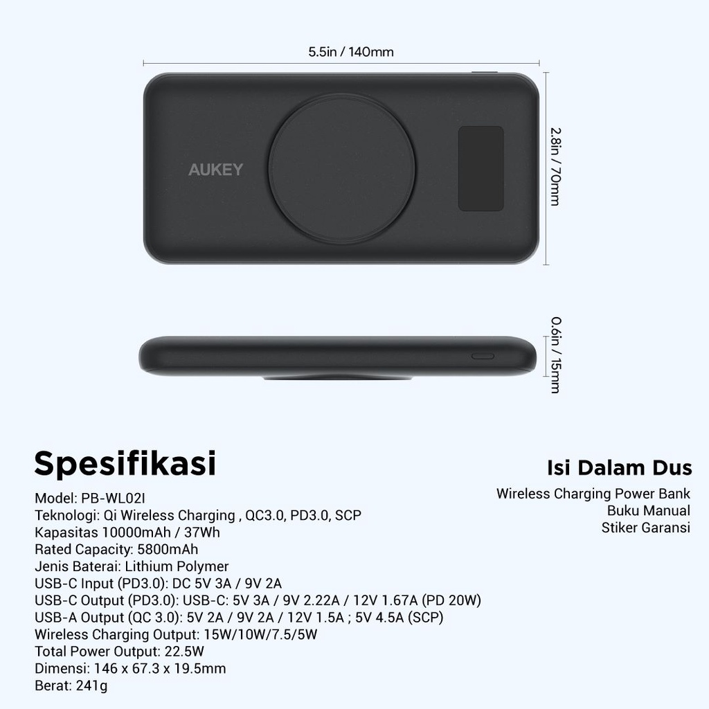 Aukey Powerbank PB-WL02I Wireless Charging MagSafe 10000mAh with PD&QC